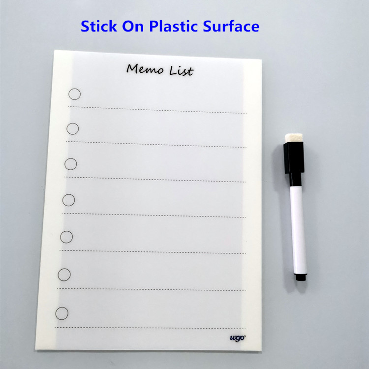 Dit is een multifunctionele Droge WGO wist het stootkussen van de memorandumlijst dat telkens weer zonder residu kan pellen plakken. Het is een merkgebonden die formule door WGO gelband wordt gemaakt (Uitvindingsoctrooi No.201310376809.X) die re-stok 1000times zonder residu en wasbare 50times. kan. A. Zijn grappig voor jonge geitjes om het te gebruiken die een kunstwerkbaan te schilderen, op het overal wordt gekleurd aangezien zij houden van. B. Het is een groot idee voor studenten om als van het lezingsplan & memorandum lijst C. te schrijven. Zijn een groot idee om het als uitwisbare nota's, het winkelen lijsten, herinneringen, en takenlijsten - thuis, in het bureau, of voor commercieel gebruik te gebruiken.